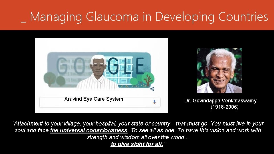 Govindappa Venkataswamy : Even after attaining the medical degree.