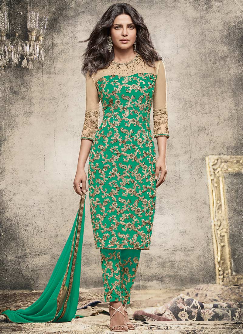 Buy Priyanka Chopra Georgette Cyan Function Wear Salwar Suit Online 6182061631 - Select price low to high price high to low.