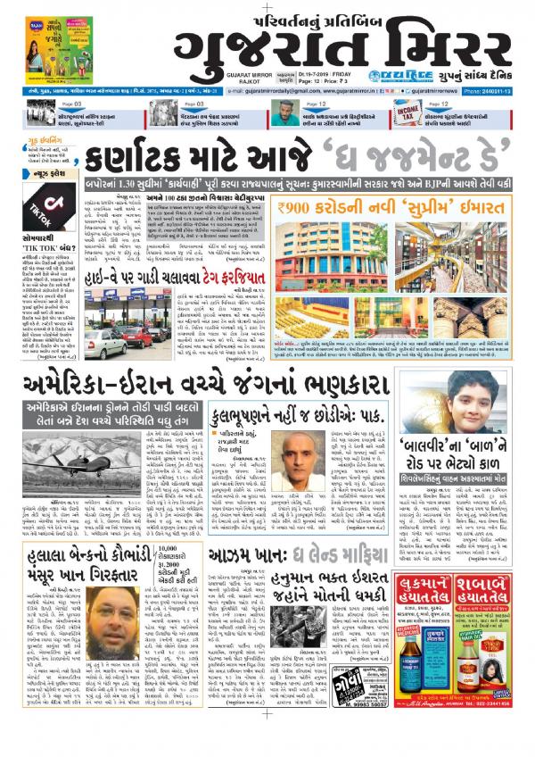 Gujarat Mirror Saurashtra Edition 01 01 70 Newspaper In Gujarati By Gujarat Mirror Read On Mobile Tablets - Rajkot #gujarat #tv9news tv9 ગુજરાતીની kzclip ચેનલને સબસ્ક્રાઈબ કરો અને બેલ આઈકોન જરૂરથી દબાવો.