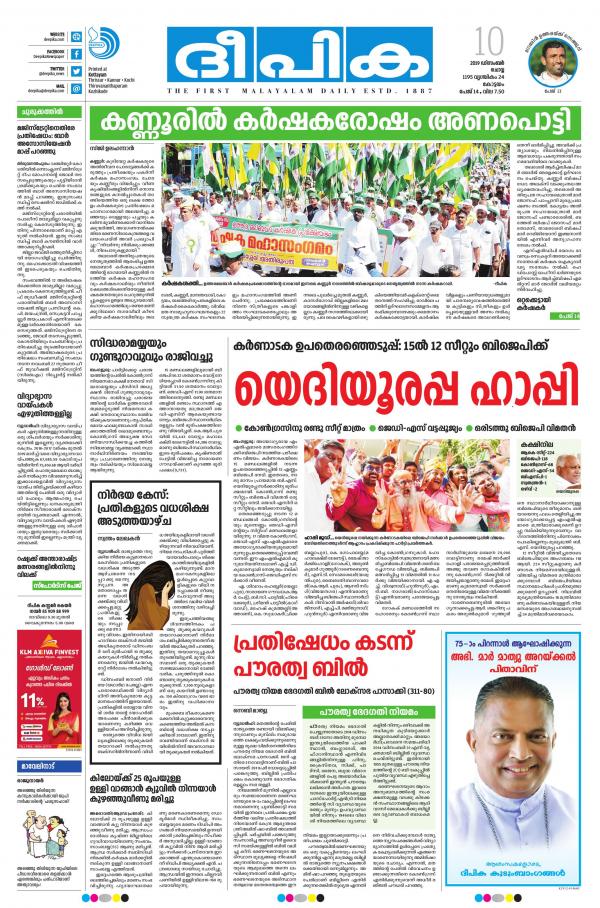 Today Deepika Newspaper Today Deepika Newspaper : Deepika, a malayalam language newspaper, is one of the oldest newspapers published in india.
